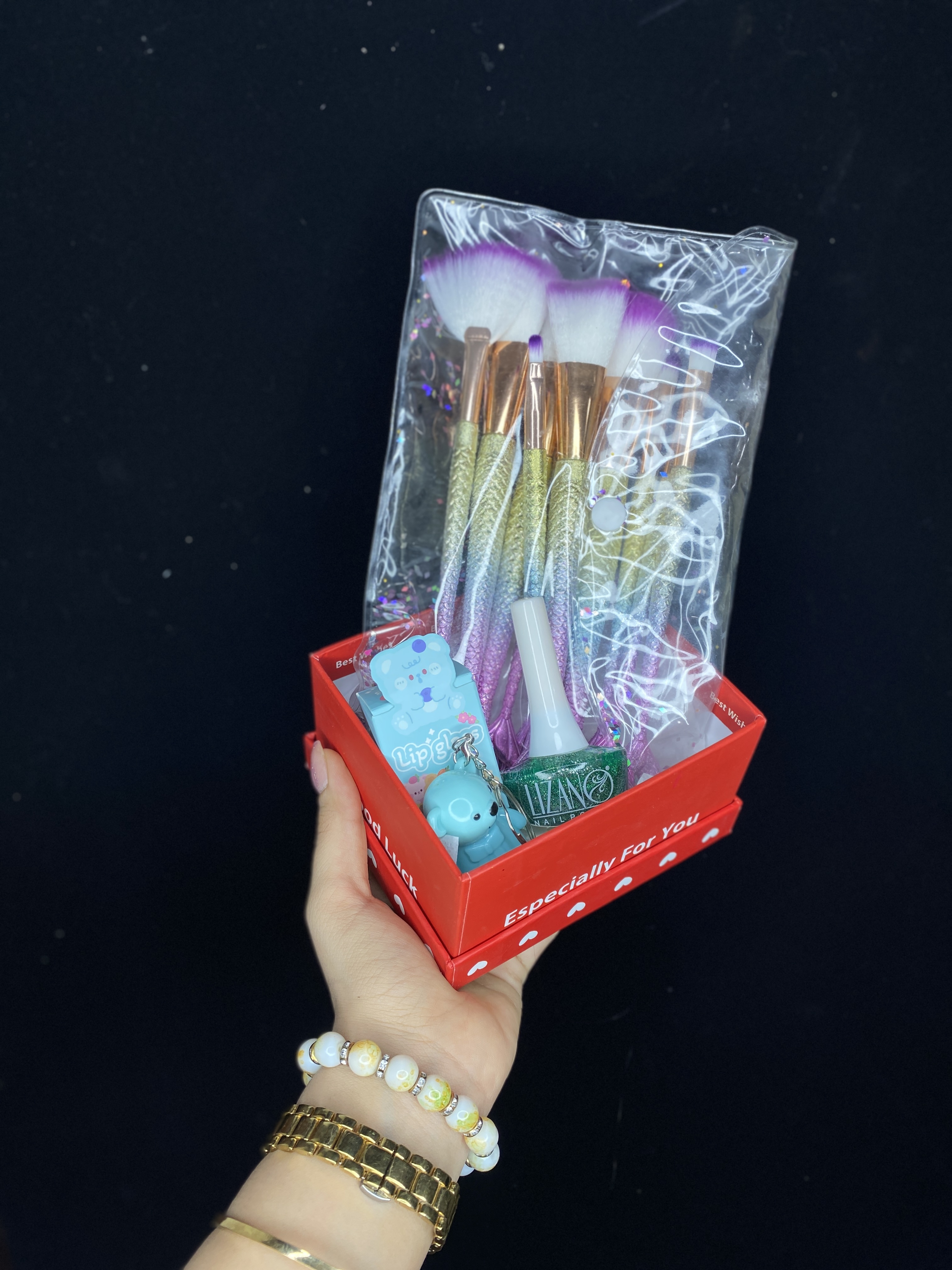 ترکیبات : ست براش ۱۰ تایی ماهی ، رژ خرسی ، لاک سبز شاین